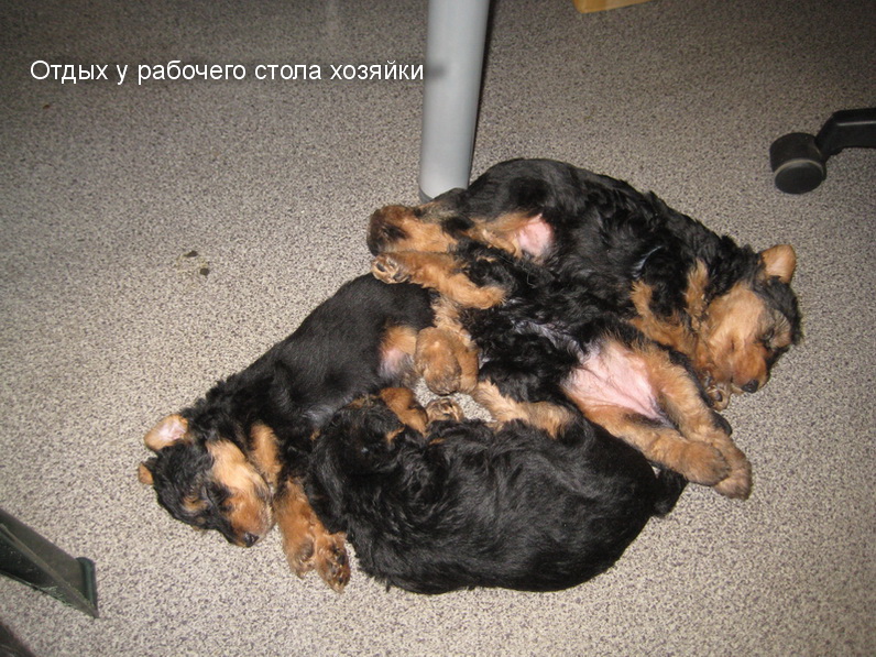 Поздним вечером после ужина и игр спать улеглись не в своём "гнёздышке", а у моих ног, под столом!