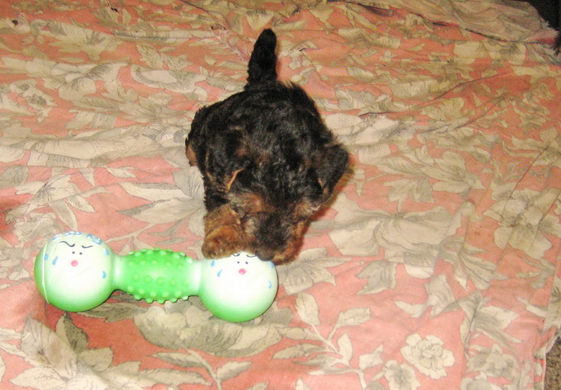 Вельше детки днём прошли испытание "страшным Хомяком", главное - игрушкой совсем нового качества для этих щенков.