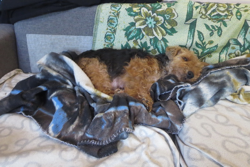 Мама-Клава для отдыха сделала себе гнёздышко, а вельше детки дружной кучкой устроились спать в боксе