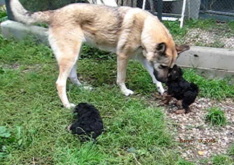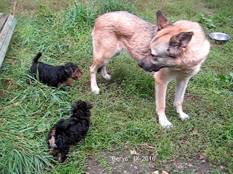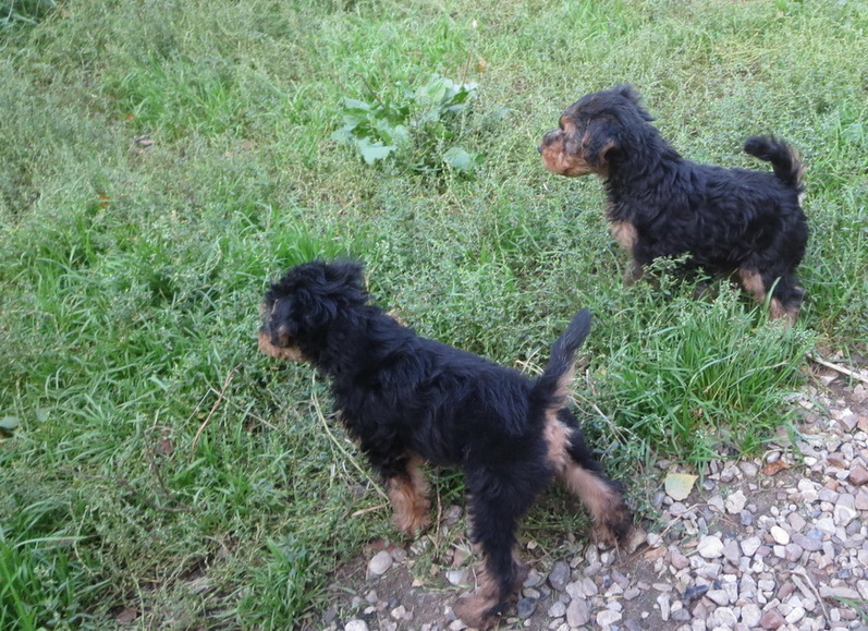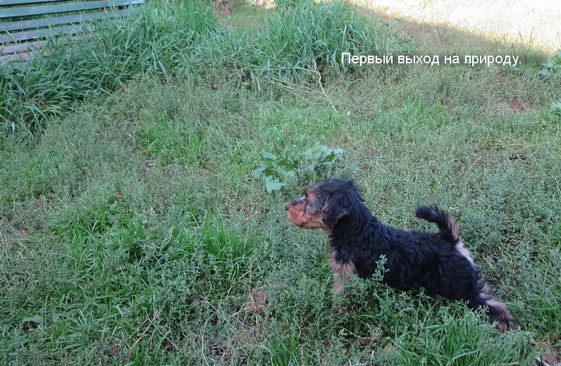 3 сентября - первый выход щенков на природу, во двор. Масса нового для них, всё очень интересно.