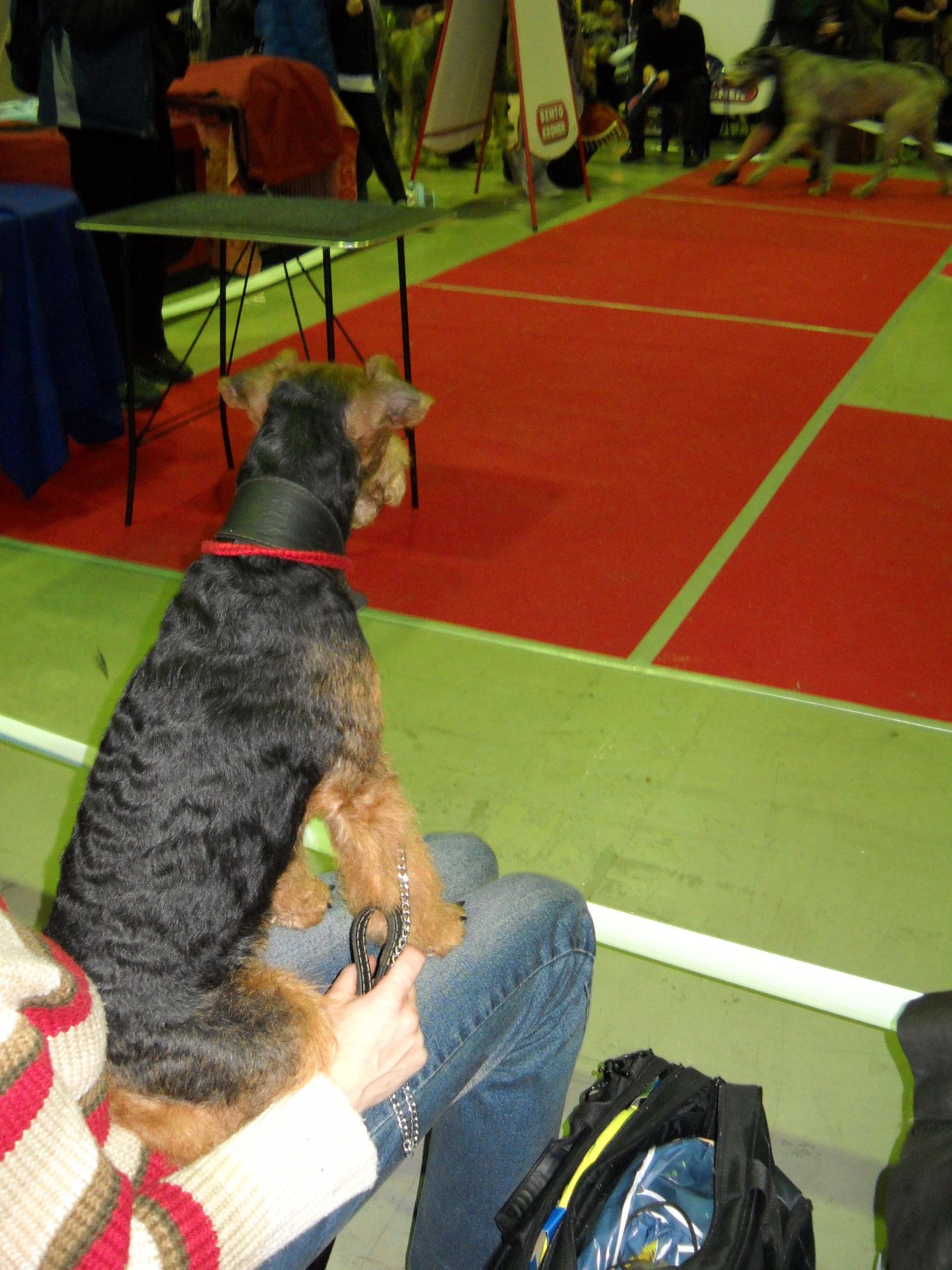 Утром мы проснулись в шесть утра , так как ринг наш был в 10-30 . Погуляли ,помылись , причесались и в " Ленэкспо" . На сайте "Зоокурьера" был указан 8 павильон , туда мы и пошли , а там оказалась выставка петушков и на втором этаже выставка кошек. Я представляю, что подумал Нилька оказавшись в такой компании :) .