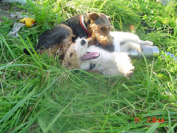 На выгуле у Нильса много друзей. Агрессивность он проявляет только в случае обороны. Нильс с радостью играет и с маленькой таксой и с огромным алабаем. Больше всех, конечно, обожает Тэсси — она фокстерьер. Вот уж где родственные души! Они устраивают показательные выступления по перетягиванию палки, борьбе «сумо», бегу наперегонки...