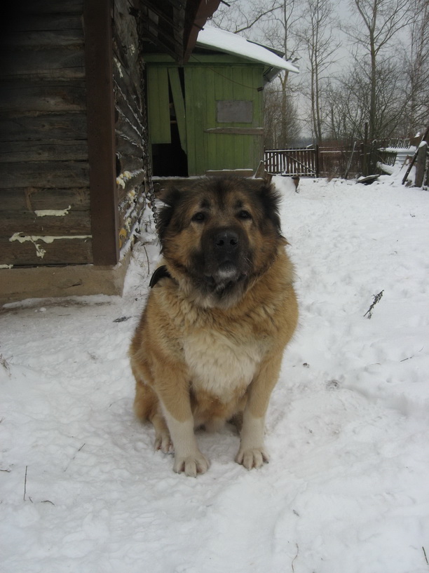Ой, сколько у вас зверья!!!! У нашего Сэма только кот и черепаха по имени Репа. Он таким окружением как у вас похвастаться не может. Кавказец - прелесть. И часто вы ее подвешиваете на забор?