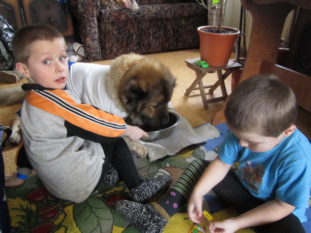 У одной из наших кавказских овчарок и вельшей, ягдов есть игра – «догони кавказскую овчарку».