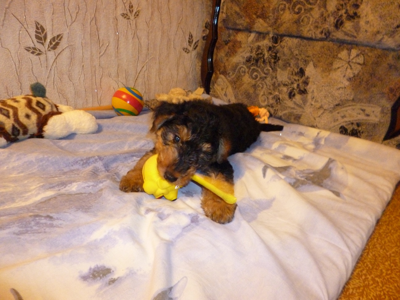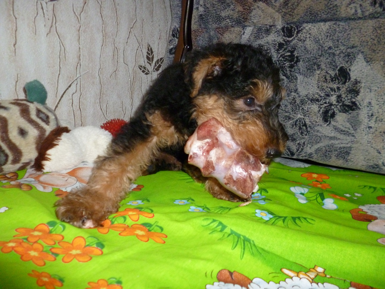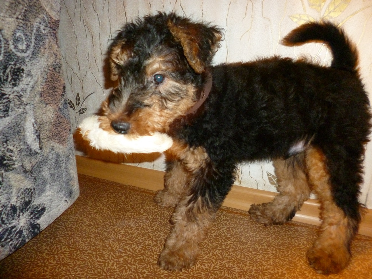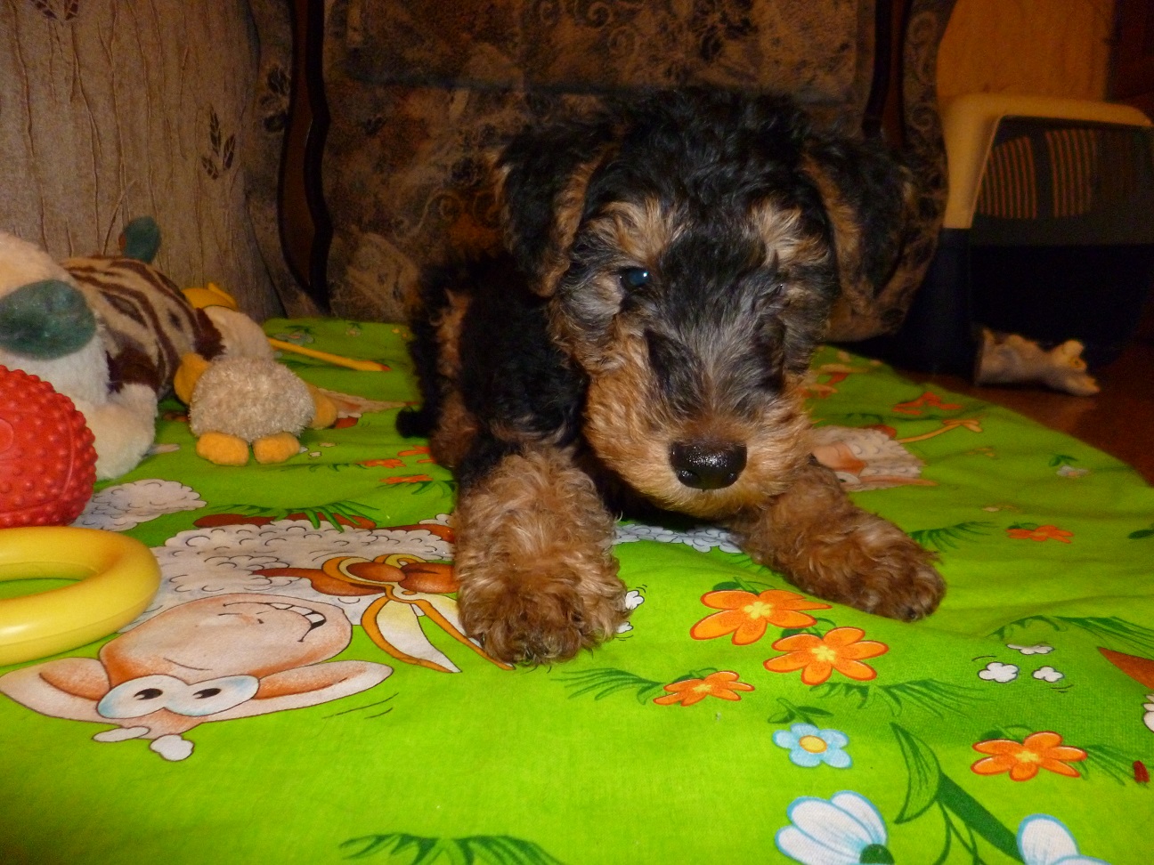 Вольф как и положено вельштерьеру был в группе самый шустрый и заводил своим азартом других щенков, всех увлекал своей игрой.