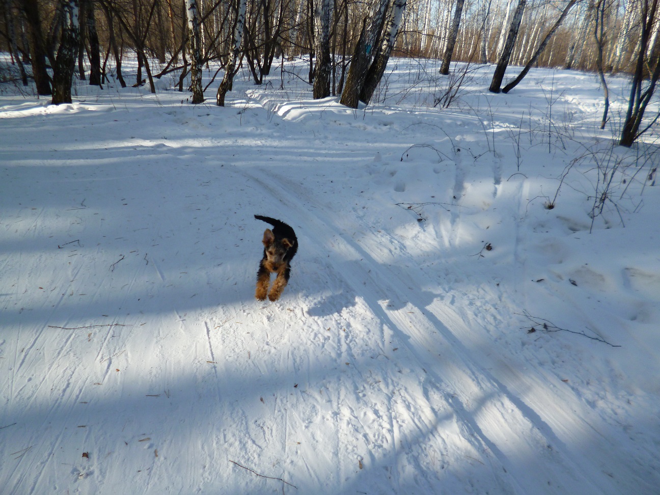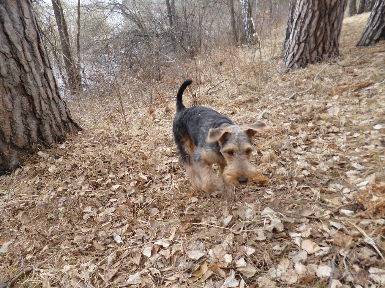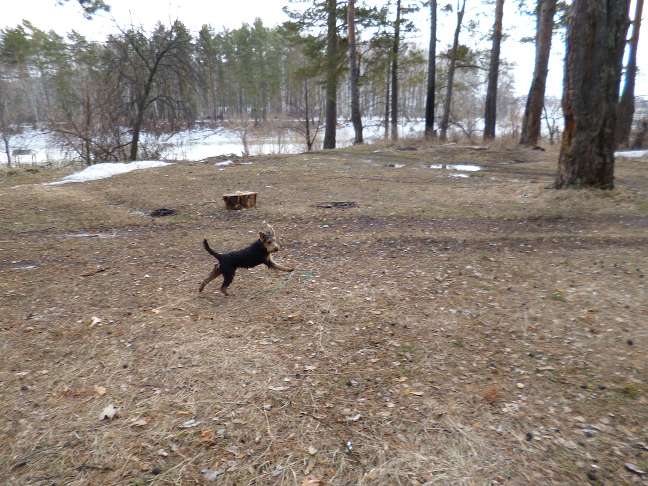 Ездили с Вольфом в лес и почти каждый день в городской лесопарк. Щенку вельштерьера необходимы длительные прогулки. И лучше если они на природе, в лесу за городом. Так он лучше познаёт окружающий мир. В лесу новые запахи, следы зверей, поют птицы, есть где побегать.