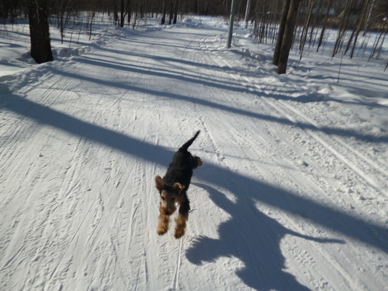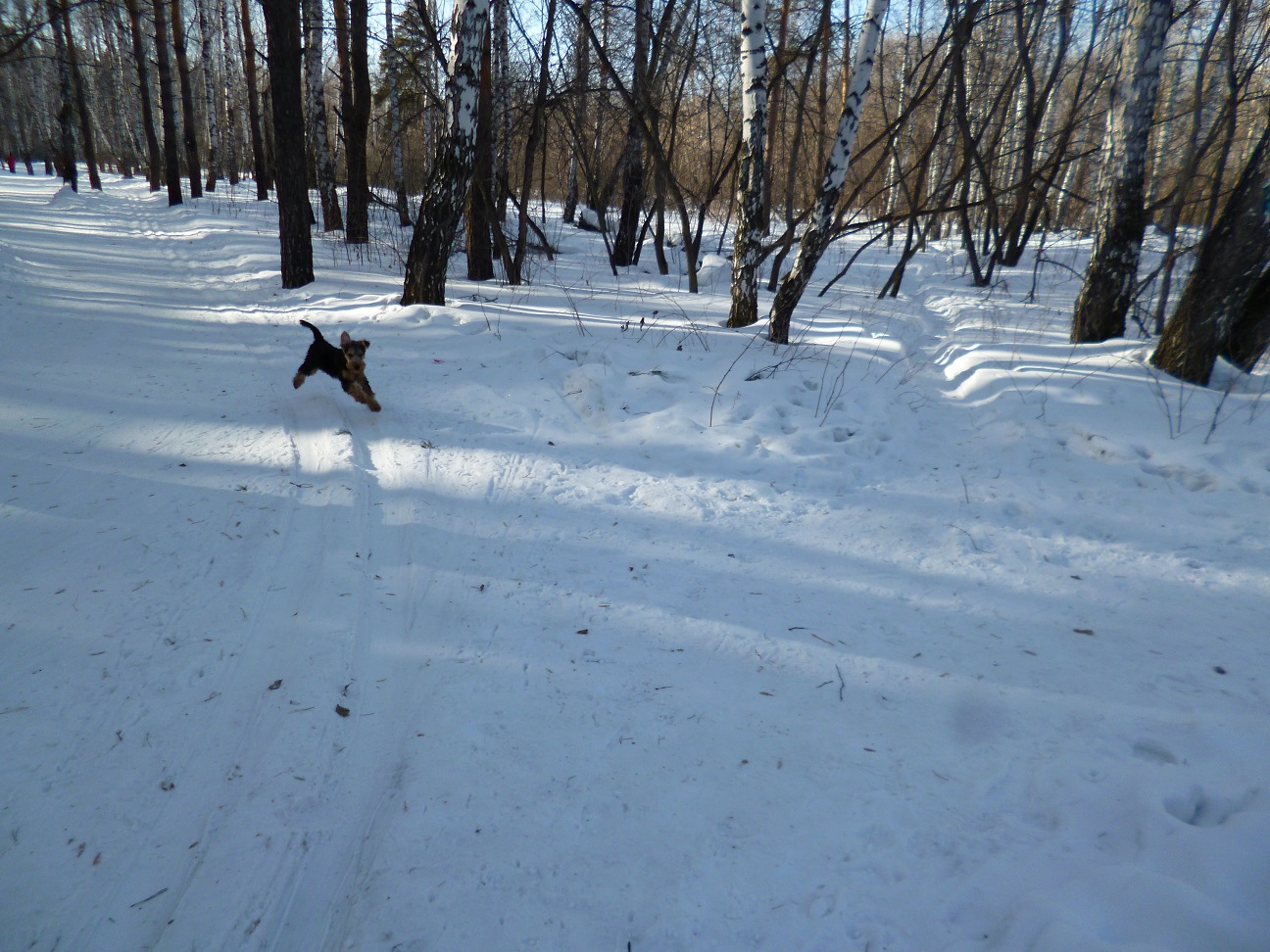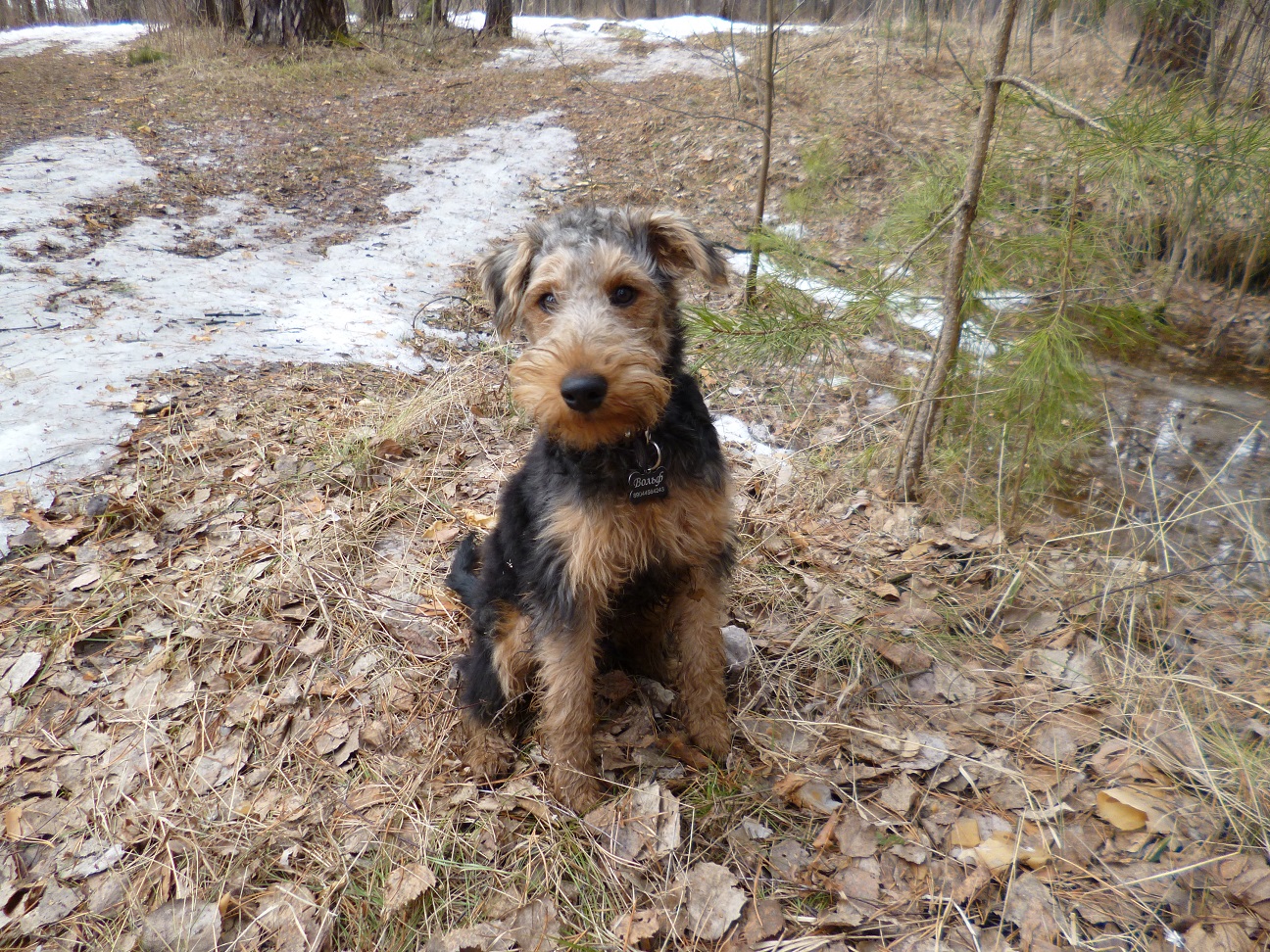 Ездили с Вольфом в лес и почти каждый день в городской лесопарк. Щенку вельштерьера необходимы длительные прогулки. И лучше если они на природе, в лесу за городом. Так он лучше познаёт окружающий мир. В лесу новые запахи, следы зверей, поют птицы, есть где побегать.