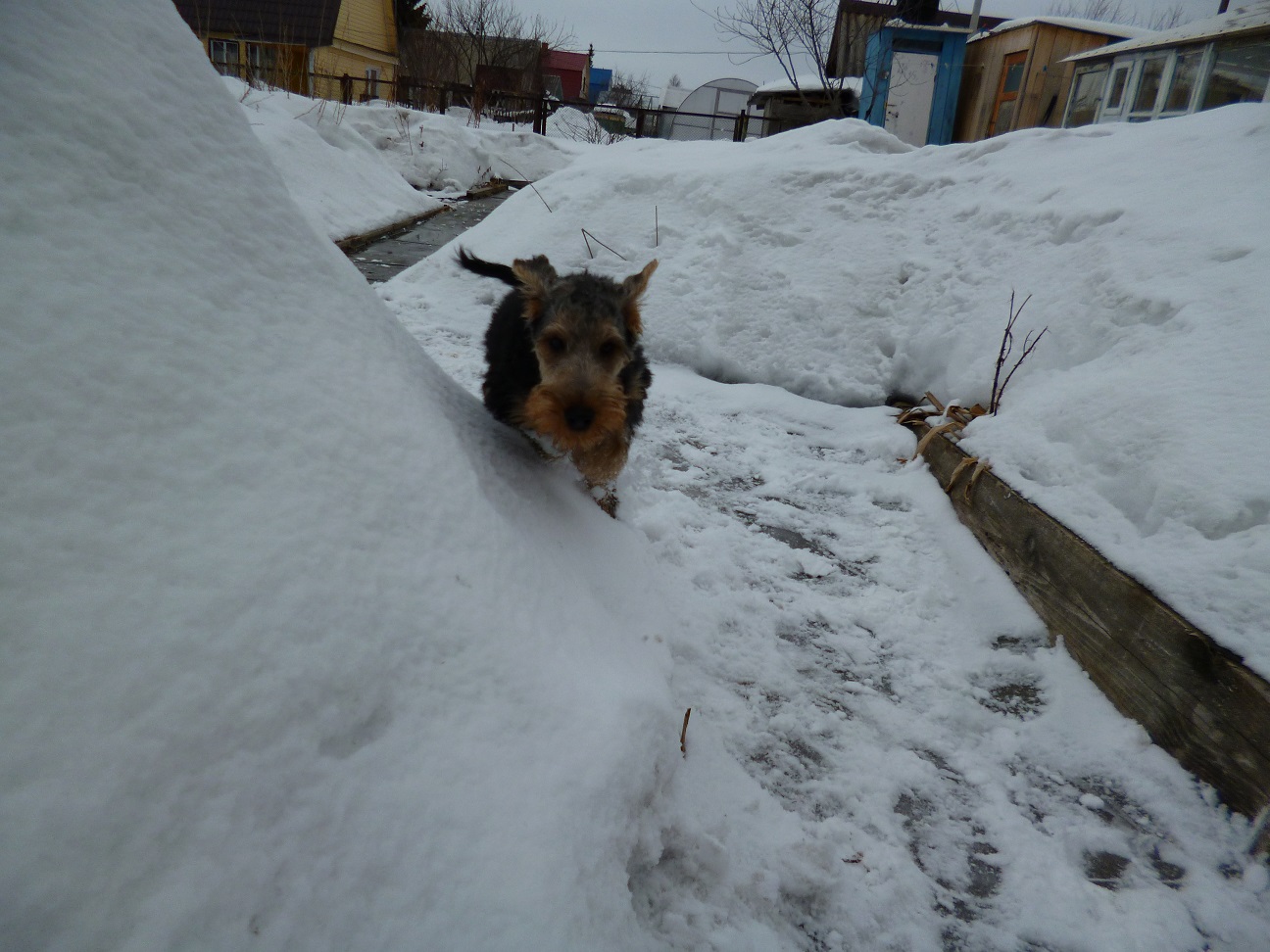 В марте, когда дождались окончания карантина, у нас еще было много снега и Вольф наконец-то порезвился на прогулке своими лапками по снегу.