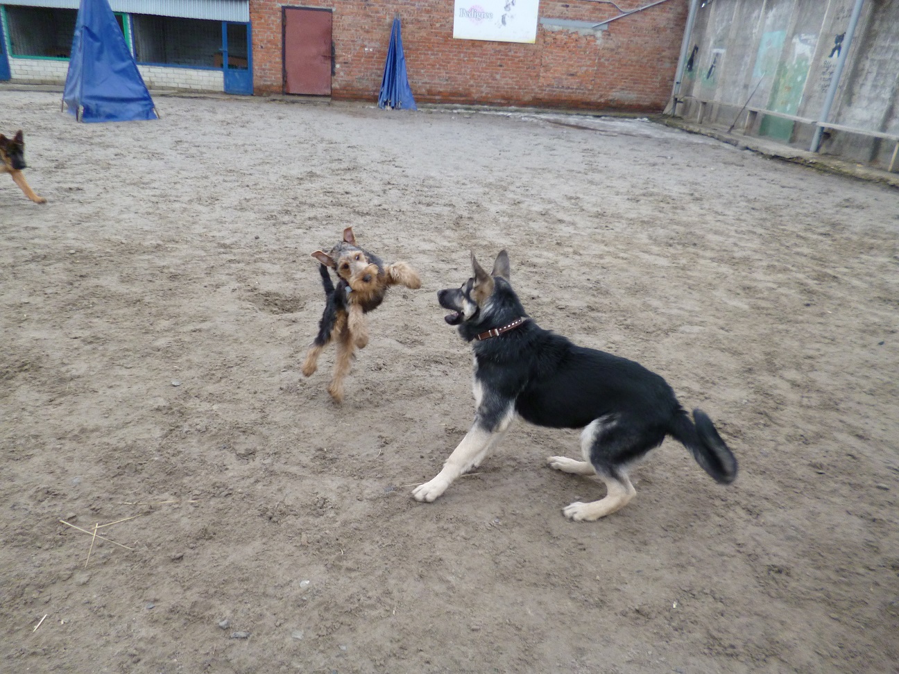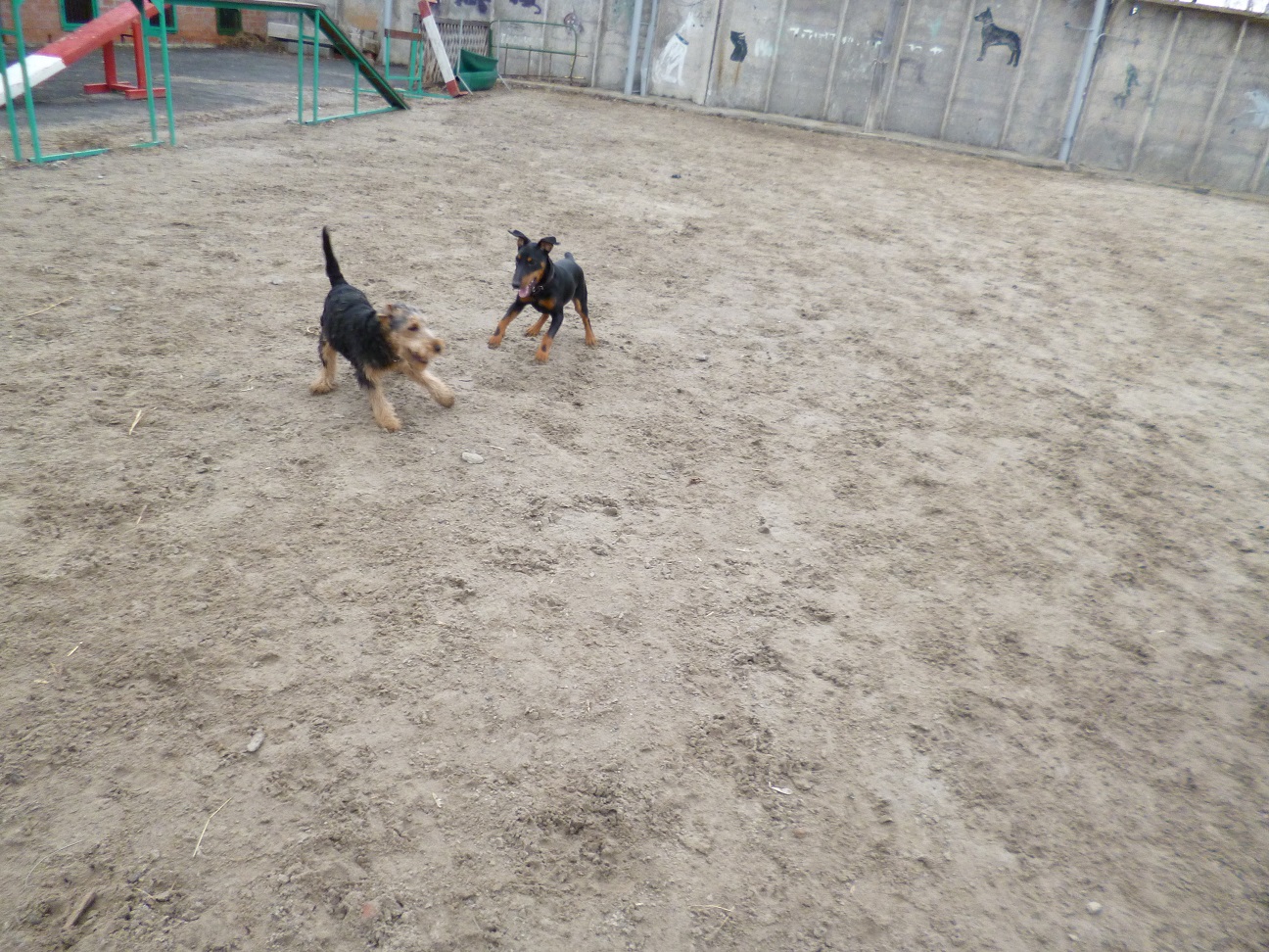 После того, как все прививки поставлены и карантин пройден, настало время занятий в клубе служебного собаководства в группе по социализации щенков. В клубе эту группу называют "Детский сад". На занятиях щенки разных пород до 6-ти месячного возраста свободно бегают и играют друг с другом на закрытой площадке. Этот период очень важен для щенков, в своих играх они проходят социализацию. То, что на первый взгляд, нам кажется просто игрой, для них много значит. Они учатся общаться со своими сородичами. Занятия в щенячьей группе проводились один раз в неделю по 1 часу. Ведёт их инструктор по дрессировке с большим опытом работы, много нам рассказывал о правильном воспитании щенков, отвечал на наши вопросы. После занятий были довольны все, и щенки, и их владельцы. Вот так два месяца мы ходили в "Детский сад". Вольф как и положено вельштерьеру был в группе самый шустрый и заводил своим азартом других щенков, всех увлекал своей игрой.