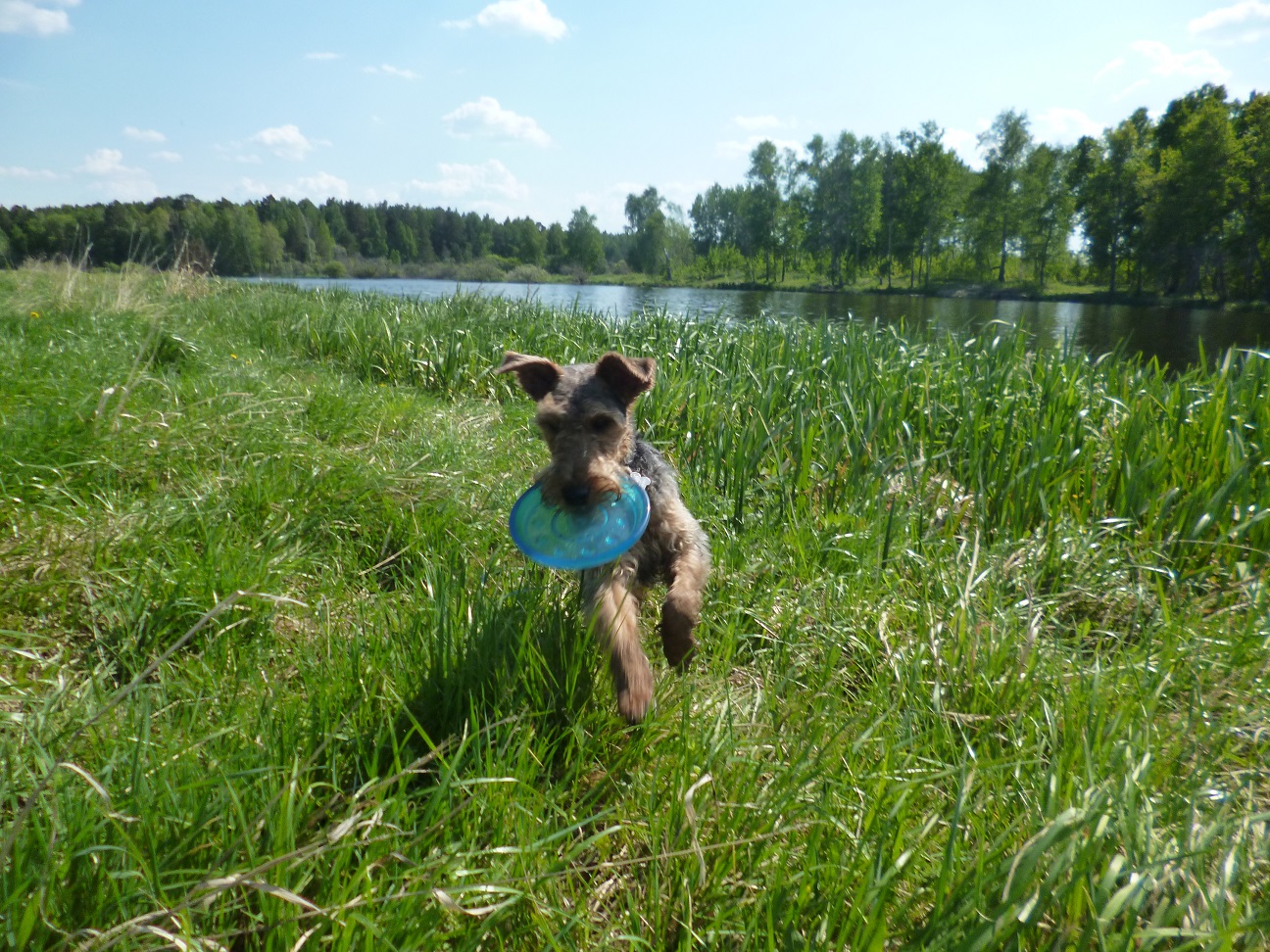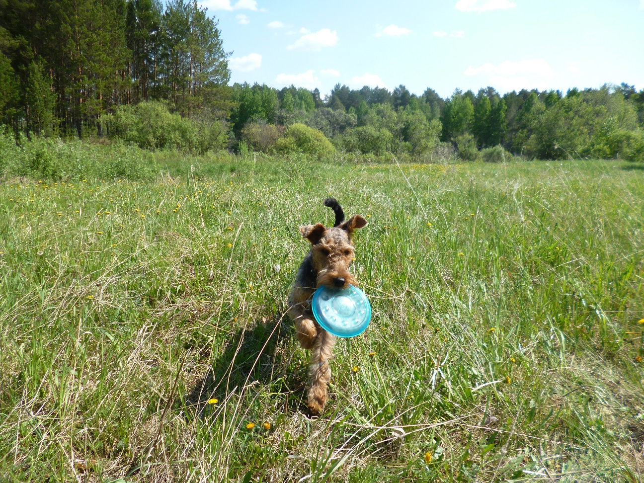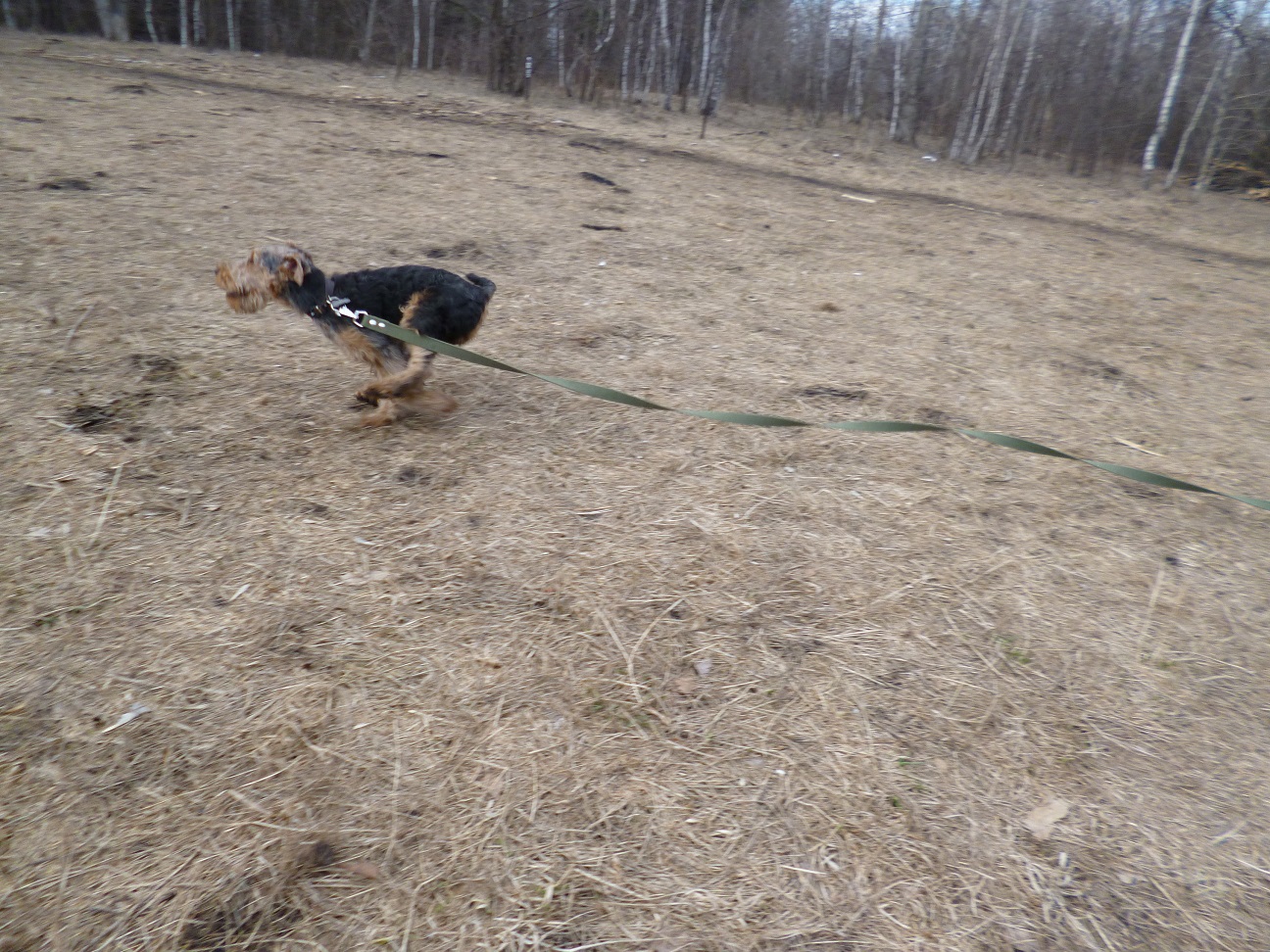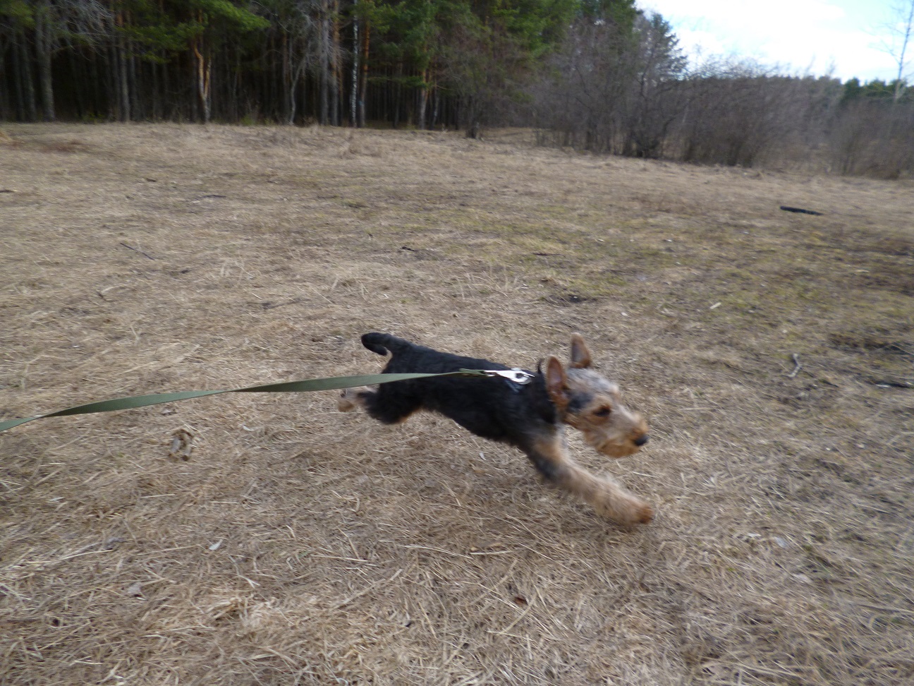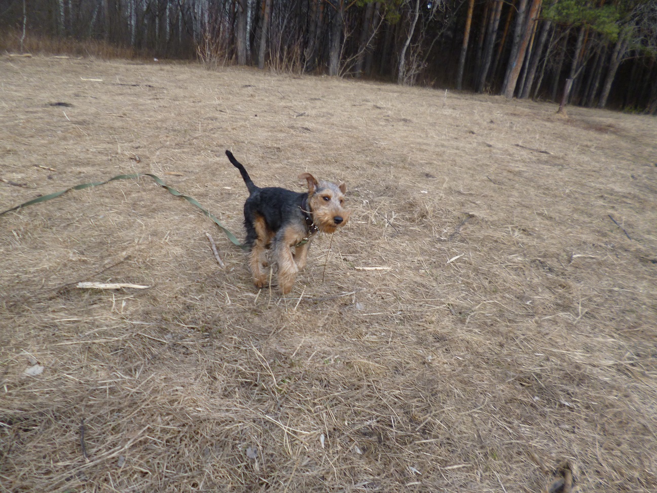 Ездили в лесопарк на прогулку. Гуляли долго. А когда собрались уже домой Вольф вдруг решил ещё немного побегать, такие круги стал нарезать. Вот где энергия вельштерьера, сколько ни гуляй, ему всё мало, бегает и бегает. Люблю я таких собак.