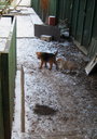 Наш подопечный маленький чихуа около месяца жил в Москве и стал настоящей декорацией - в темноте, в ветер или в дождь на улицу не выходил - не его это дело в плохую погоду на улицу идти! Приехал он опять к нам, в деревню. На прогулки - с Мэджиком. Утро, день - никаких проблем. А вот на ночь и в дождь он на прогулки не идёт. Пришлось мне на руках выносить его и ставить на землю, рядом с Мэджиком. Что уж она ему на ухо "шептала" - не знаю.... Но через пару дней этот малыш и на ночь, и в ветер, и в дождь галопом вылетал на прогулку и там носился по всему двору, несмотря на погоду! Сделала Мэджик из него настоящую собаку!