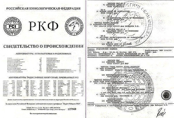 4-х коленное Свидетельство на щенка остаётся у владельца щенка!