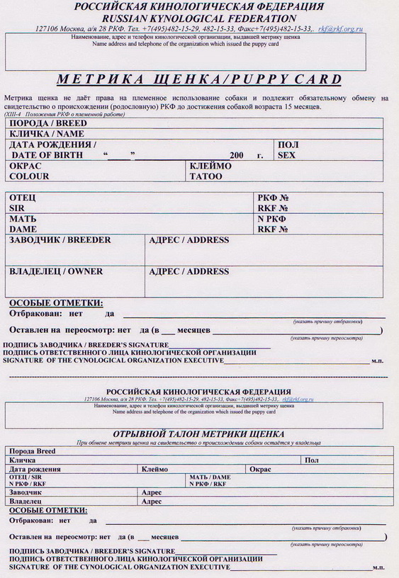 Сдаёте в Клуб Метрику щенка, точнее - её верхнюю часть, с четко заполненными данными о владельце щенка (Вашими данными).