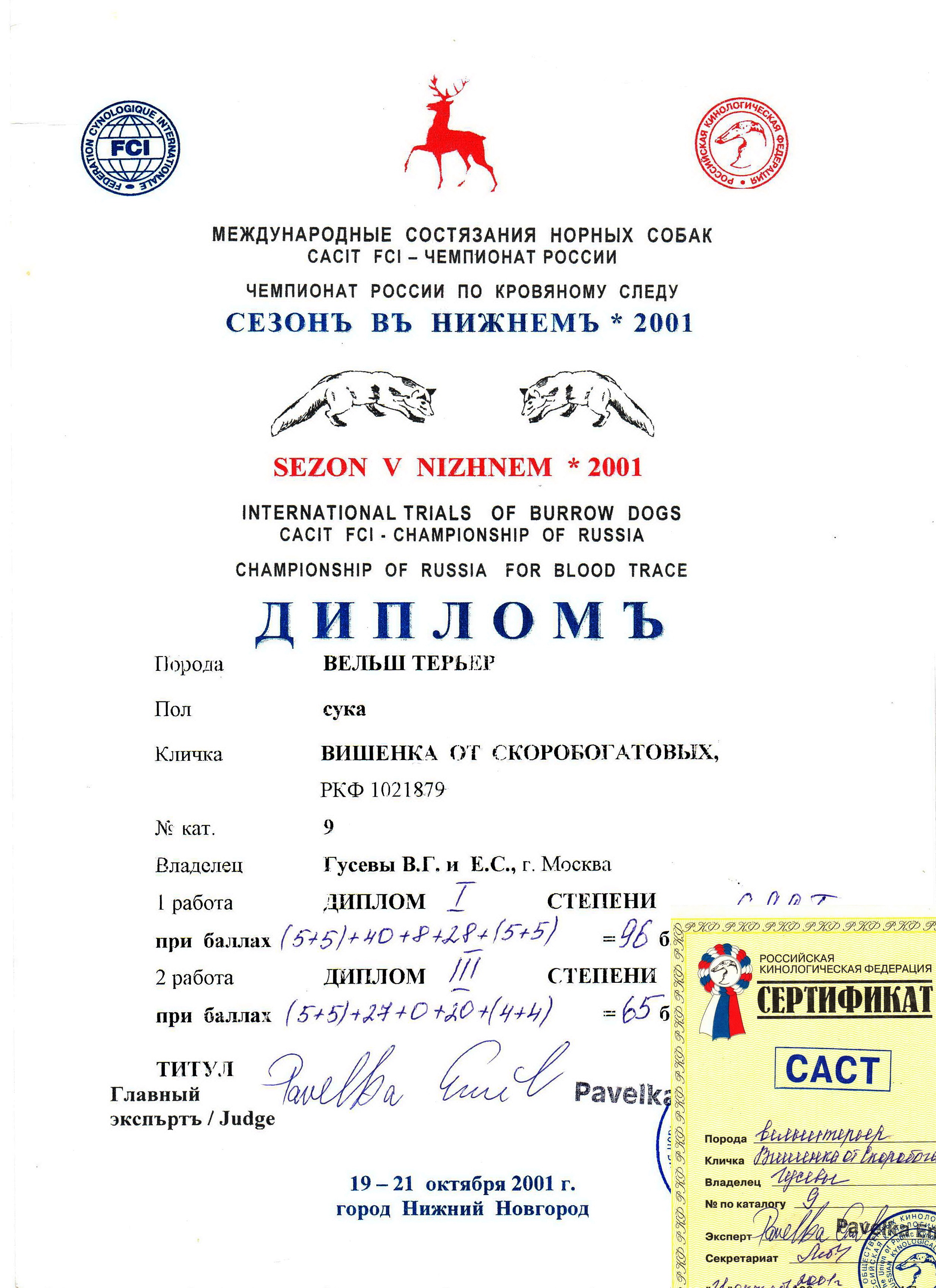 Немного истории про нас с Вишенкой - мы с ней на Чемпионате во "Фрязево" (IV-2004) и некоторые её дипломы