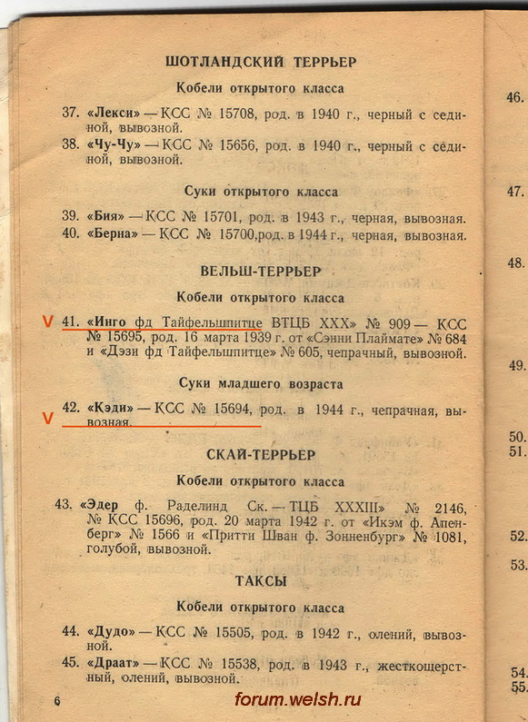 И ещё в этом Каталоге Выставки 1945 г. были результаты Выставки 1944 г. !Виктория Уланова писал(а):Спасибо , настоящий раритет ! Сорок пятый год – на охот.выставке показали шотландских терьеров , скай –терьеров … и это после войны .