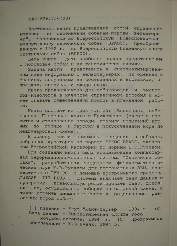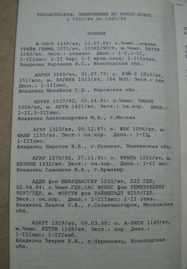 ВРКОС – ВПКОС очень хорошо помню. И сейчас записываю своих собак в ВПКОС, т.к. без этого невозможна бонитировка