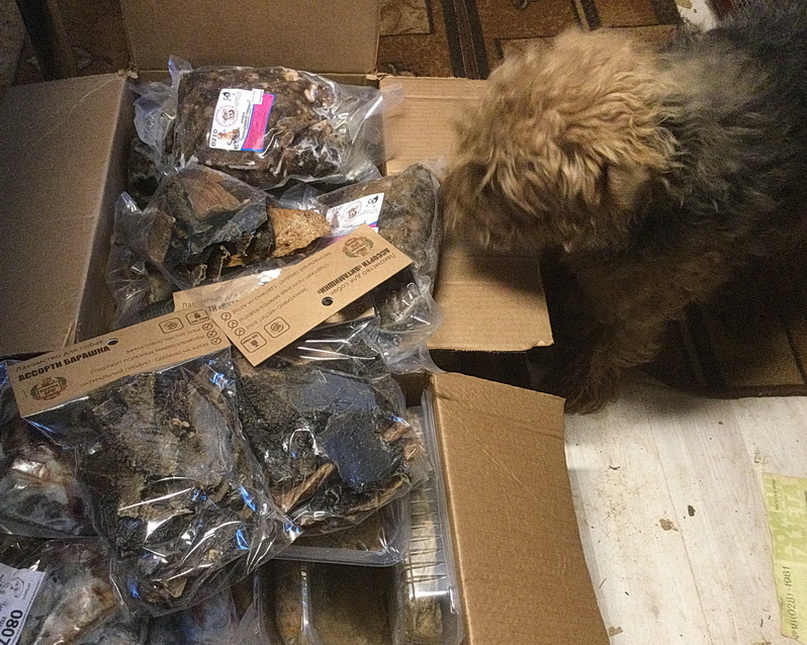 Вкуснятину собакам в праздничные дни начала мая привёз нам Файерхунд.