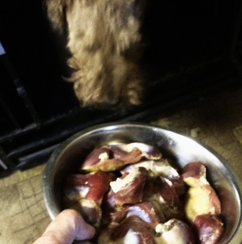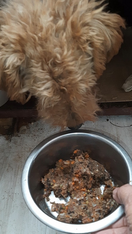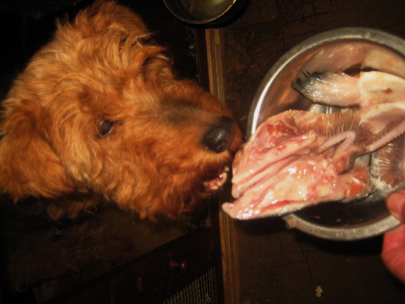 В основном Чила ела вареные остатки со стола хозяев (картофельные очистки, обрезки кабачков, скорлупу от яиц)