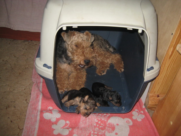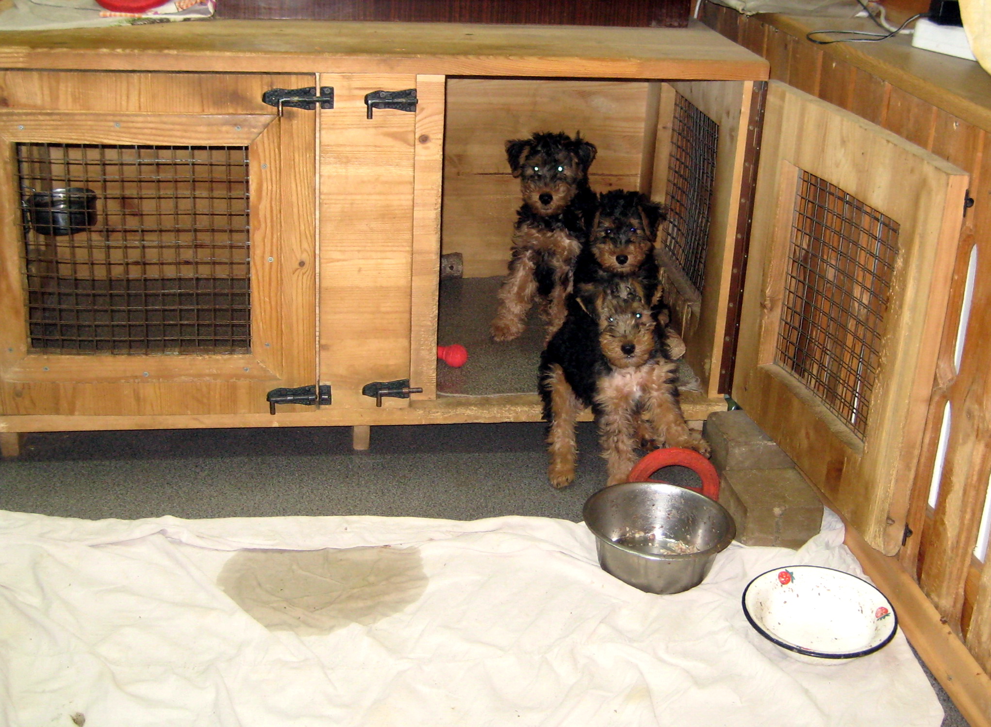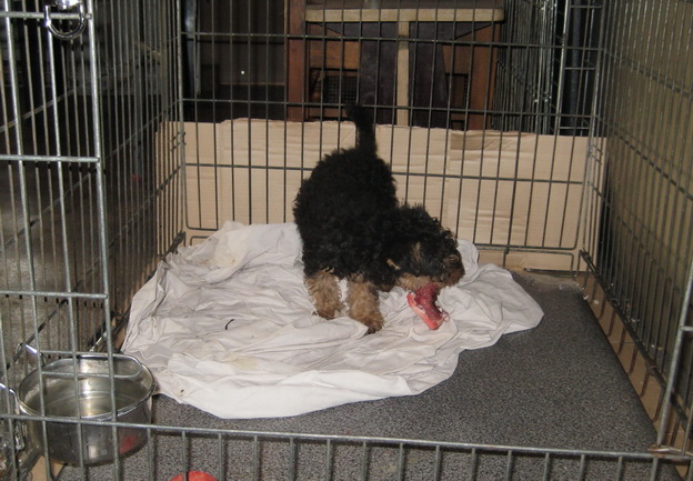Например, я всех щенков кормлю только в клетке, поэтому они очень легко привыкают находиться в клетке.