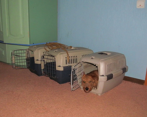 Но клетка достаточного размера, к тому же когда собака к ней приучена, спасает от многих бед не только квартиру, но и саму собаку!
