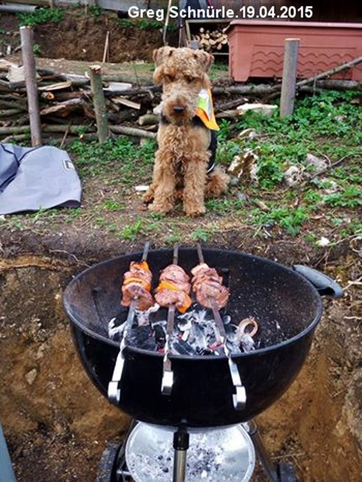 Max has the perfect spot to control the shashlik at the dacha.