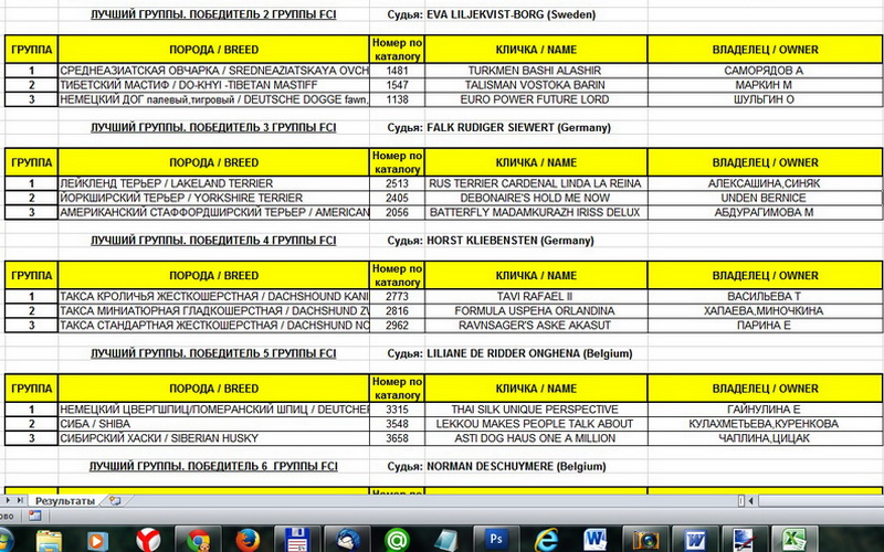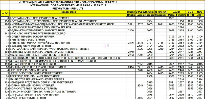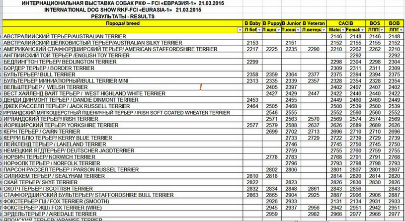 Результаты с сайта РКФ (22.03.2015)