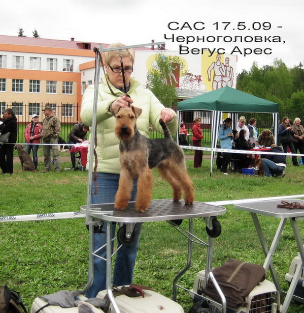 А вот еще на двух фото - подготовка мастером моих собак к рингу, на выставке.