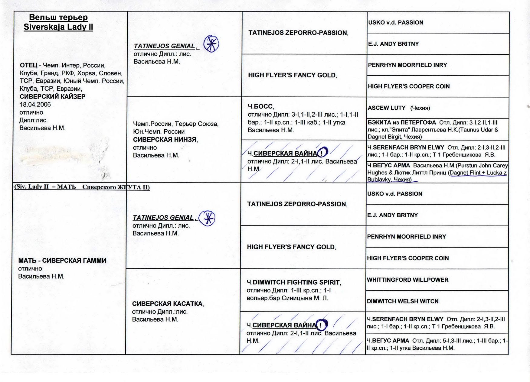 Помимо него в происхождении Сив.Леди II – собаки известного, исходного поголовья питомника.