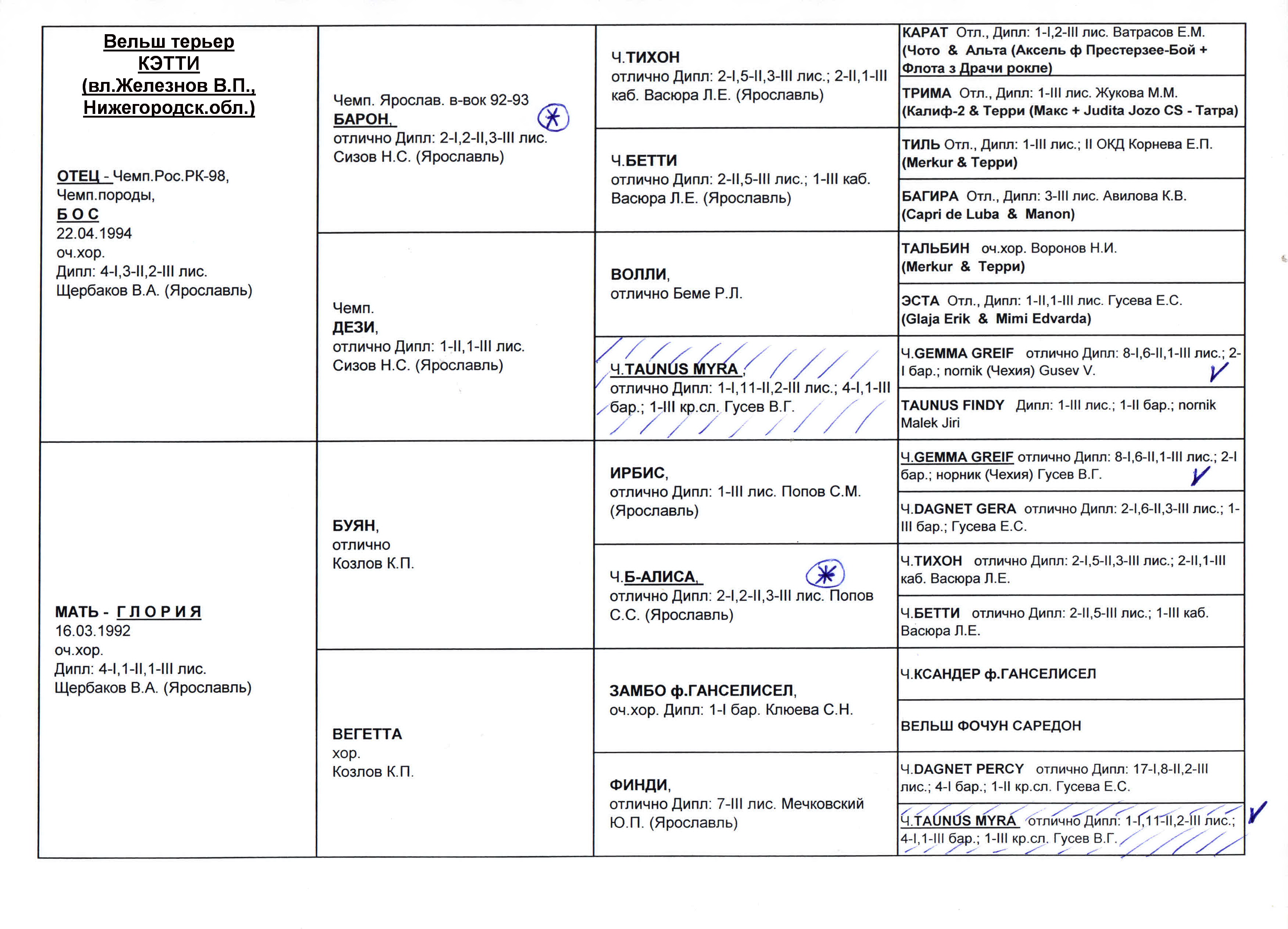 Те, кто давно занимаются вельш терьерами, наверняка помнят перечисленных исходных собак.