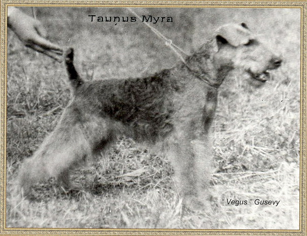 Она приехала из Чехии взрослой, была небольшой, компактной, длинноголовой собакой.