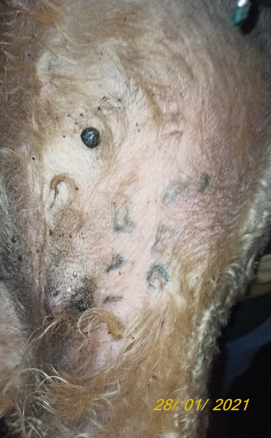 Клеймо прочитать мы не смогли. Документы на собаку мы не получили пока ...