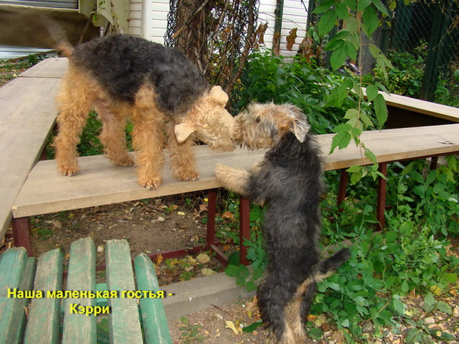 В гостях у нас - очень редкая для нашего питомника собака - ягд терьер, щенок.