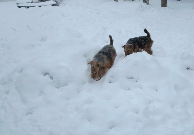 После прогулок в снегах надо подкрепиться. Не зря наши собаки ходили на охоту (до большого снега) - теперь подкрепляются лосятинкой.