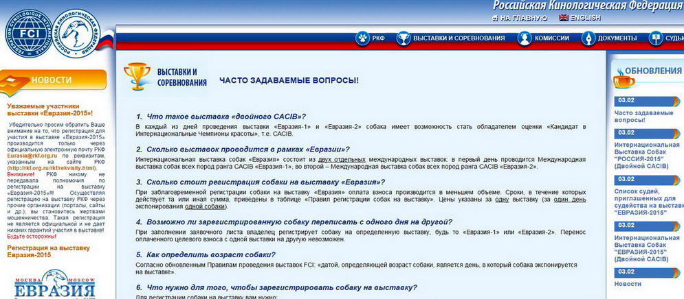 Внимание! РКФ никому не передавала полномочия по регистрации на выставку «Евразия-2015»!!!