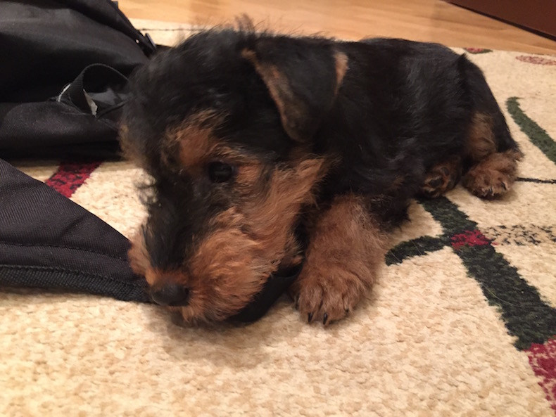 Вот и щенок №3 (дочка Ареса и Олимпии) осваивает новый дом, а после этого, конечно же, отдых -