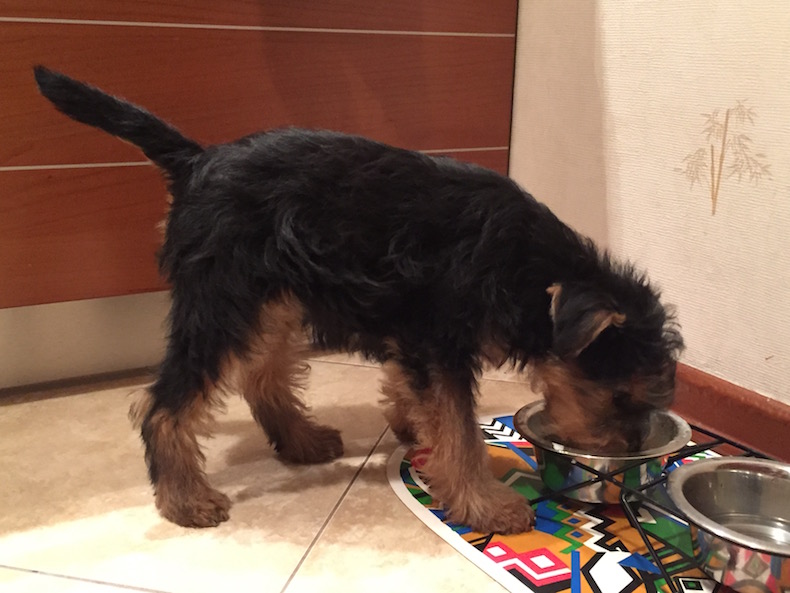 Вельшик изучает новое лакомство