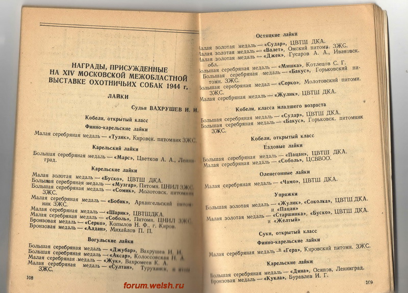 И ещё в этом Каталоге Выставки 1945 г. были результаты Выставки 1944 г. !Виктория Уланова писал(а):Спасибо , настоящий раритет ! Сорок пятый год – на охот.выставке показали шотландских терьеров , скай –терьеров … и это после войны .