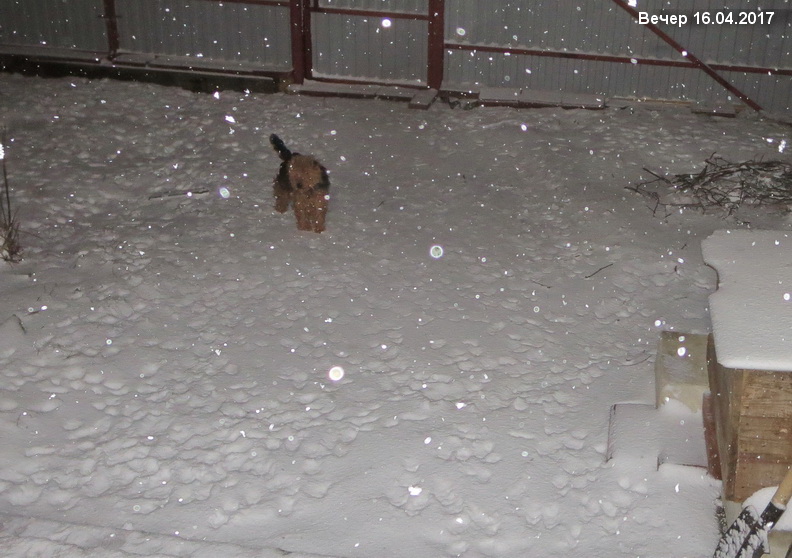 Поздний вечер 16 апреля у нас в деревне - а снег идёт, а снег идёт ...
