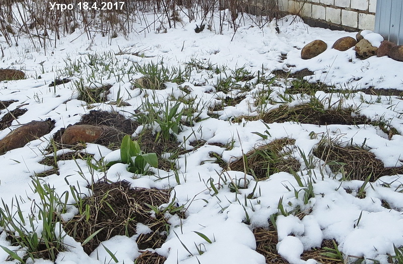 16 апреля в деревне на улице пока ничего не цветёт и Апрель украсил землю свежим снежным покрывалом.