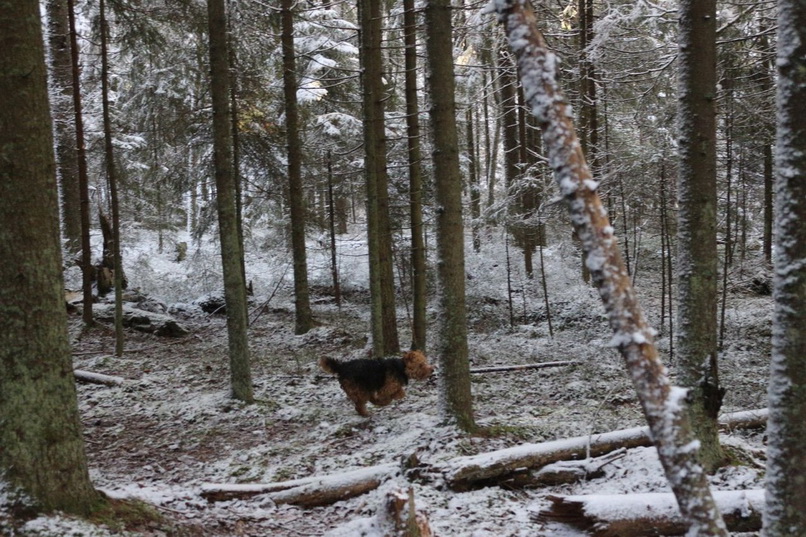 "Нильс, Гюрза и Эфа. Всю троицу в кадр было не поймать, носились слишком резво... :-D . С утра у нас было -12.