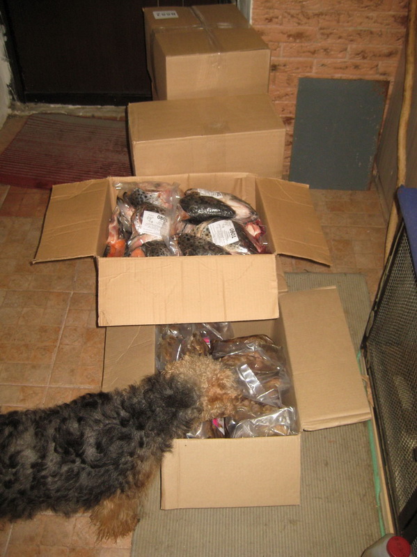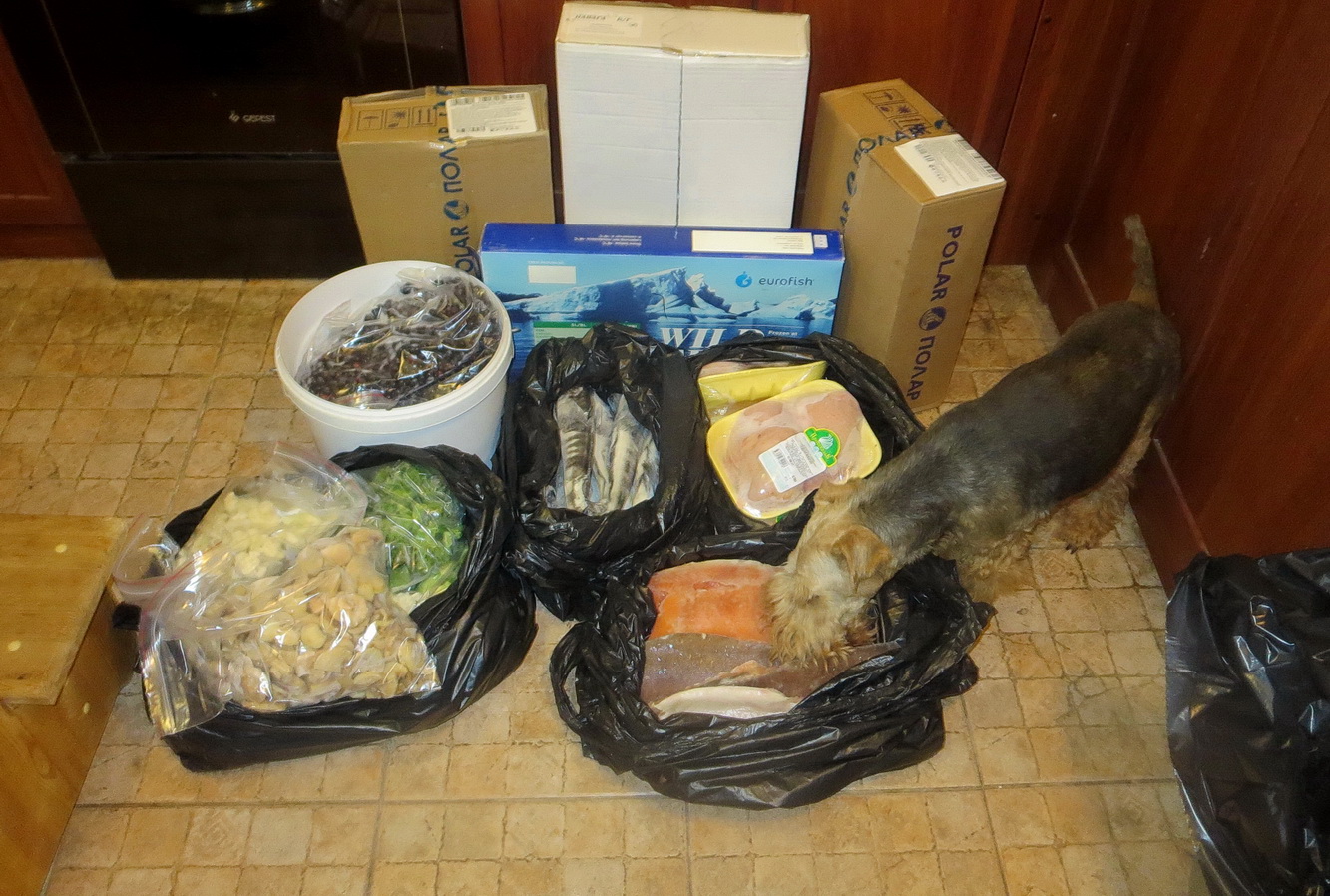 Получили для своей псарни очередную порцию продуктов от "Песик.рф" - рубец, головы горбуши.