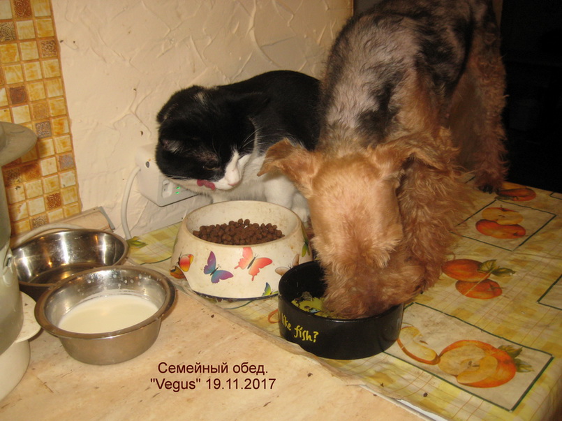 А кормящая Claudia освоила запрыгивание в «столовую» Кота, где у него частенько есть разная еда.
