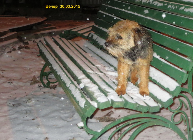Конец Марта, Зима не сдаётся - 30 марта вечером нас засыпало снегом. На прогулке по свежей пороше пенсионерка D.Octavia